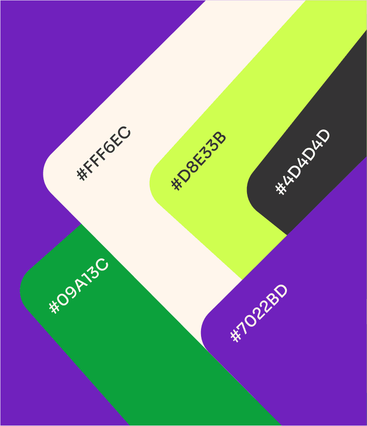 We chose electric lime green and vivid violet to build instant contrast and personality. Lime brings freshness and motion; violet adds intellect and creative depth. Together, they form a duo that feels sharp, modern, and full of life.