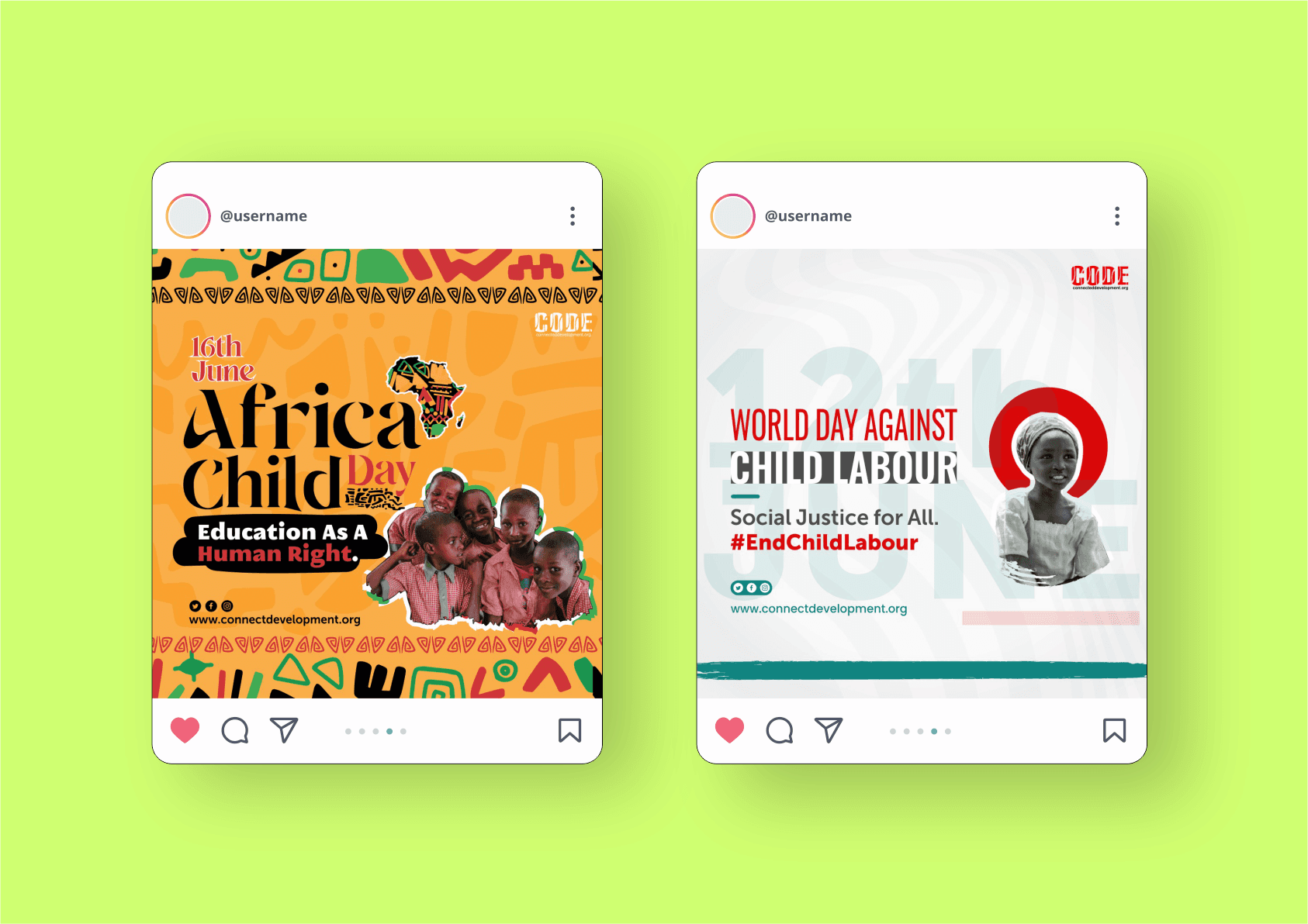 The African child suffers the impact social economic misfortunes, Connected Development as one of the Leading voices the education, promoted online campaigns celebrating the african child as well fighting against child labour.
